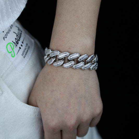 Pulseira Miami Cuban Link 18mm Banhado a Ouro Branco