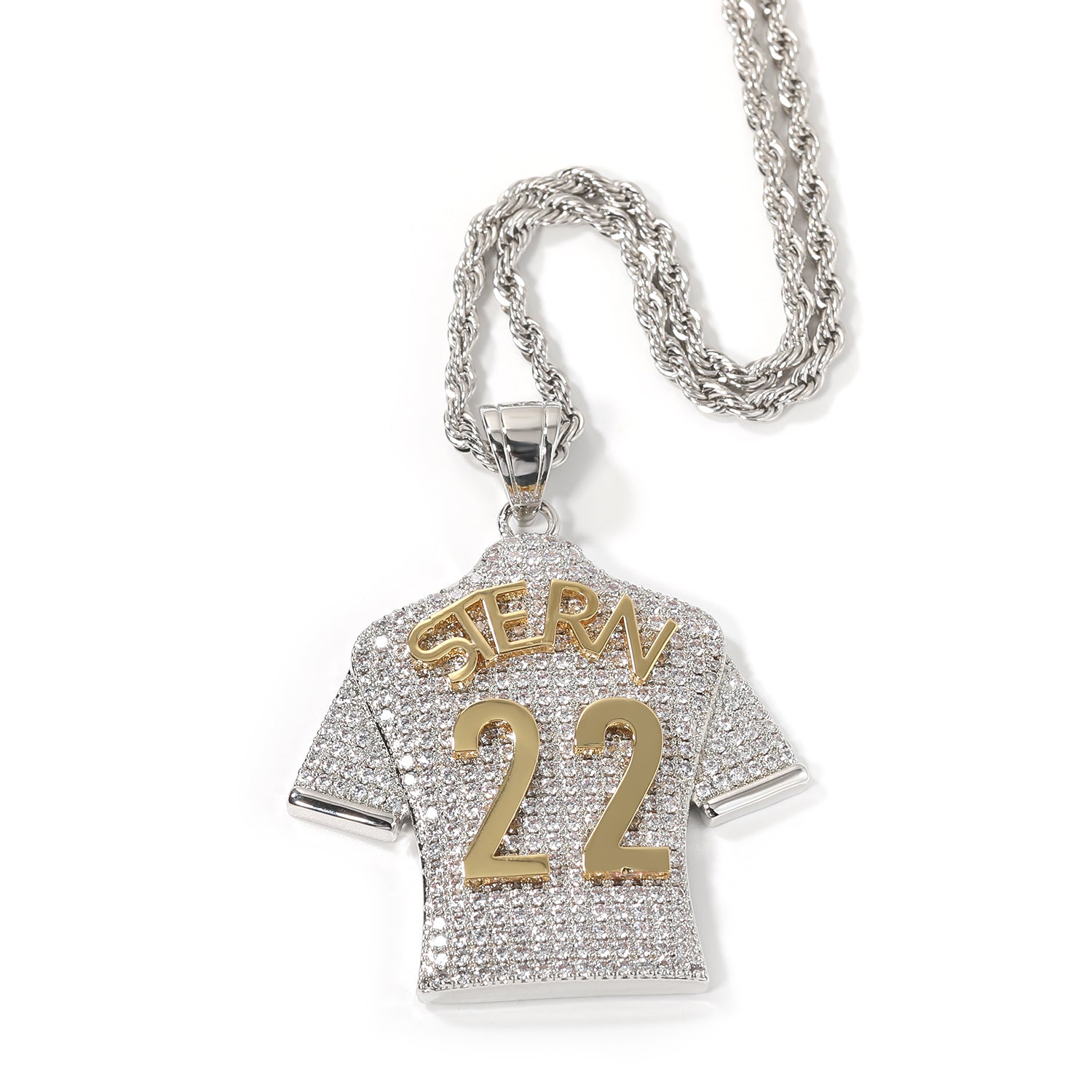 Colar personalizado em formato de camisola, com nome e número à escolha. Corrente em aço inoxidável, não escurece. Pingente em cobre, cravejado com Zircônias Cúbicas 5A, garantindo brilho premium.